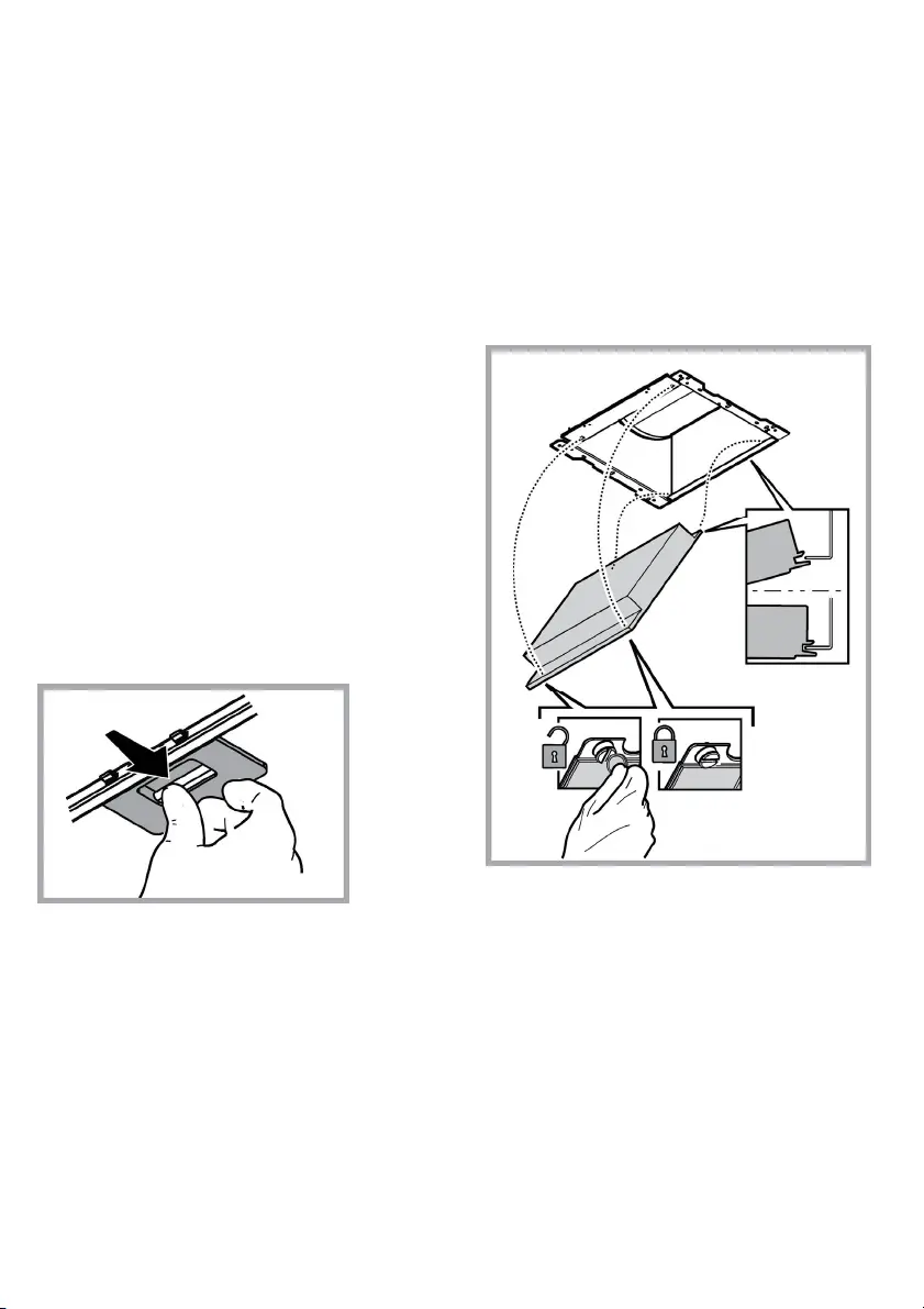 Per smontare il filtro grassi tirare la maniglia di sgancio a molla.