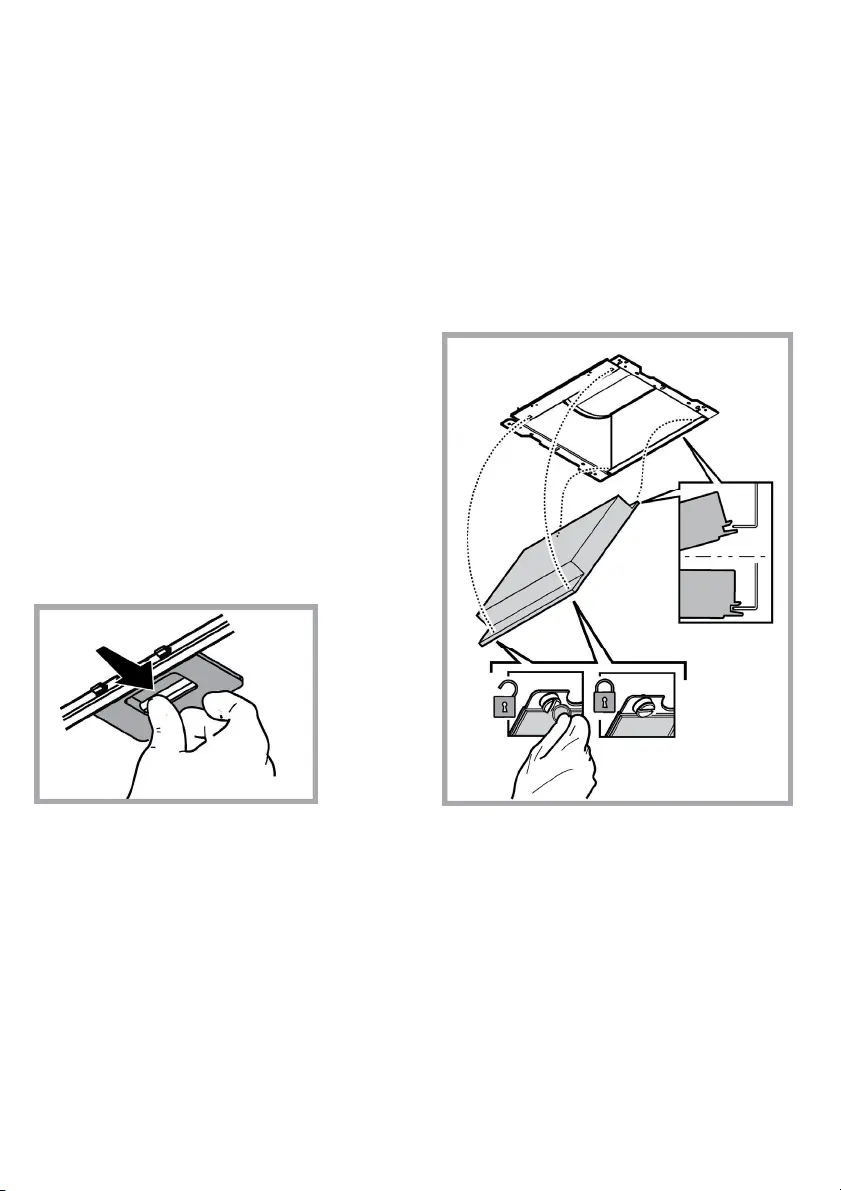 Zavěste nejdříve filtr s aktivním uhlíkem vzadu, na kovový jazýček