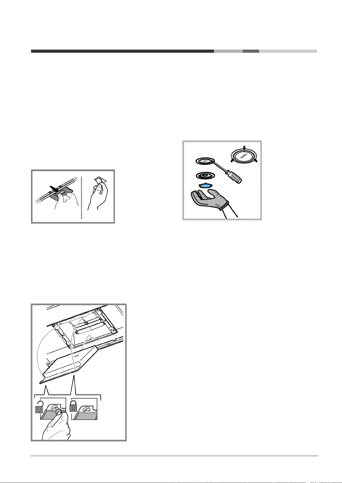 Remove the charcoal filter by turning the knobs fixing it to the hood by 90°.