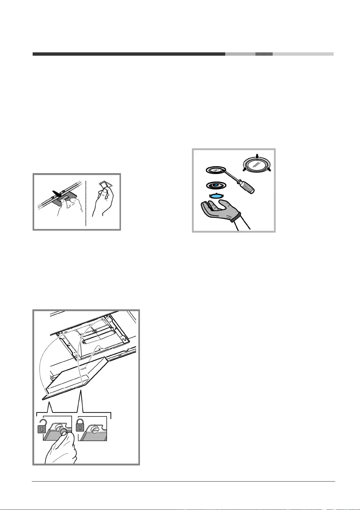 Filtre çerçevesini davlumbaza bağlayan dübelleri 90º çevirerek çıkartınız.