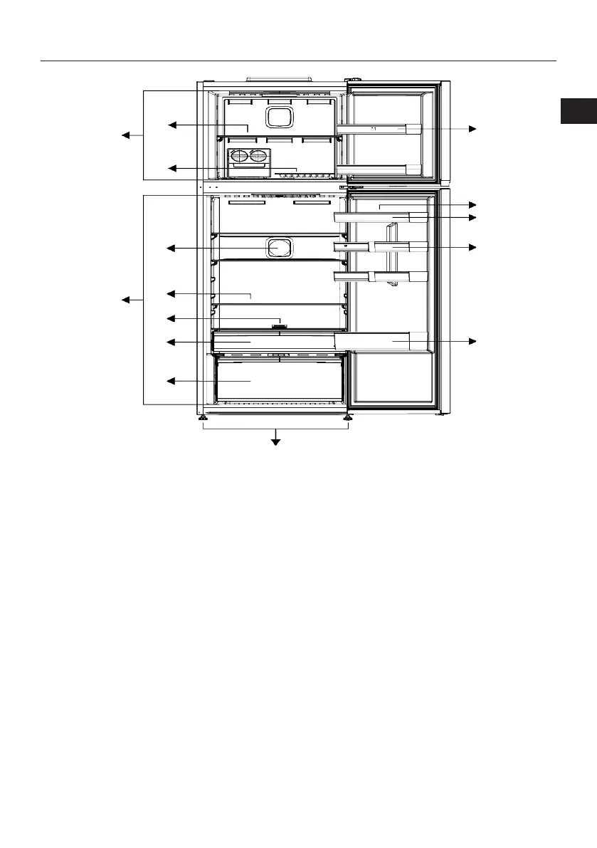5 *Prateleira para garrafas 6 Pés ajustáveis