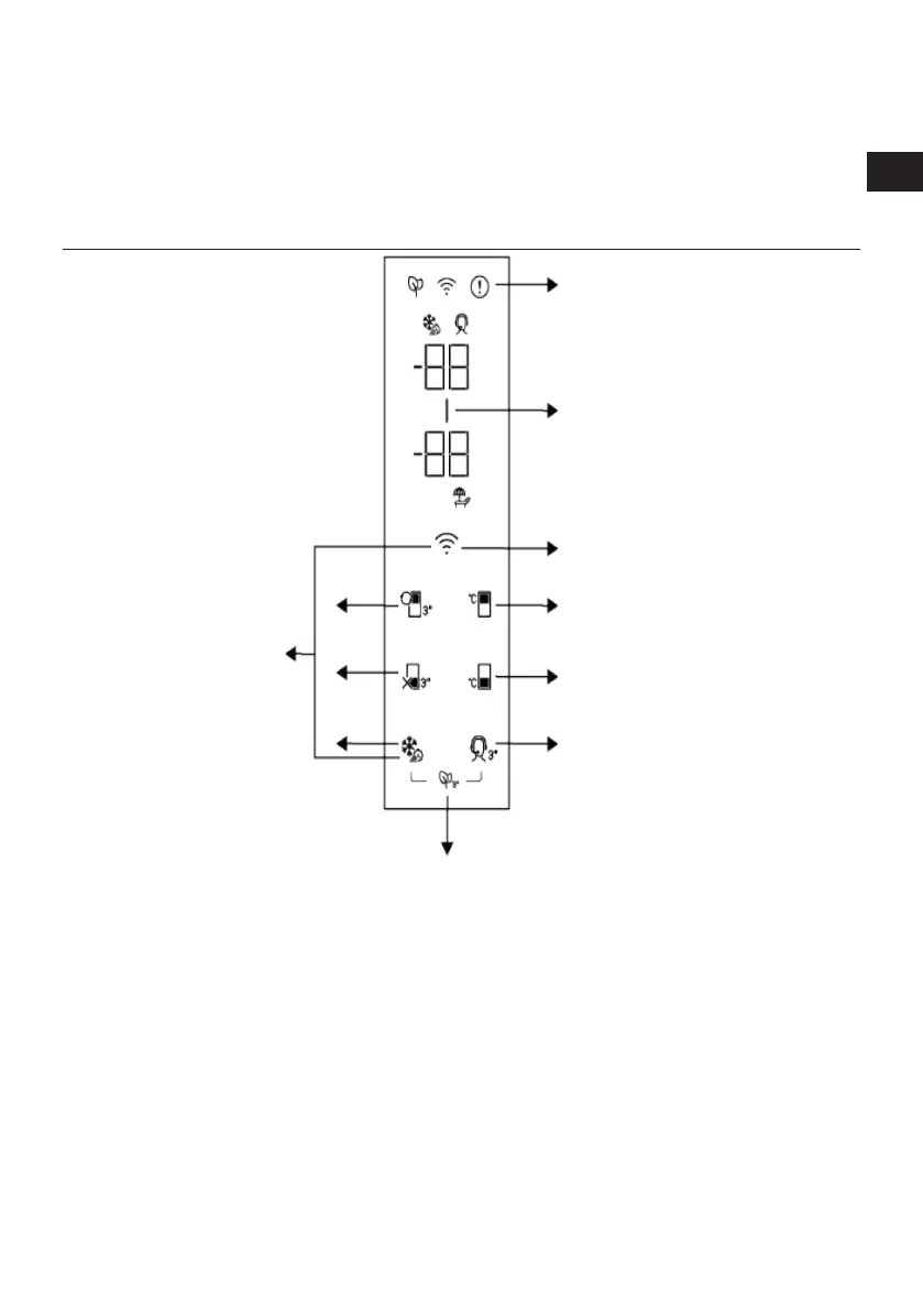 1 Indicador do estado do erro 2 Indicador de poupança de energia