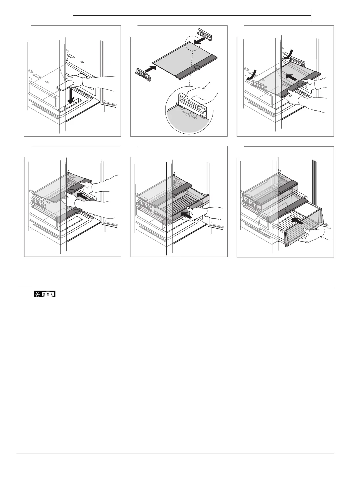將抽屜盡可能向前拉、向上抬高後取出。若希望增加冷凍室容量,也可以不安裝抽屜直接使用。將食物放回架上/櫃中時請確實