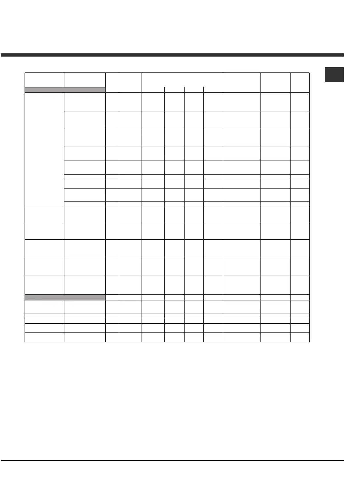 Cooking advice table for ovens with an ExtraLarge Space cavity