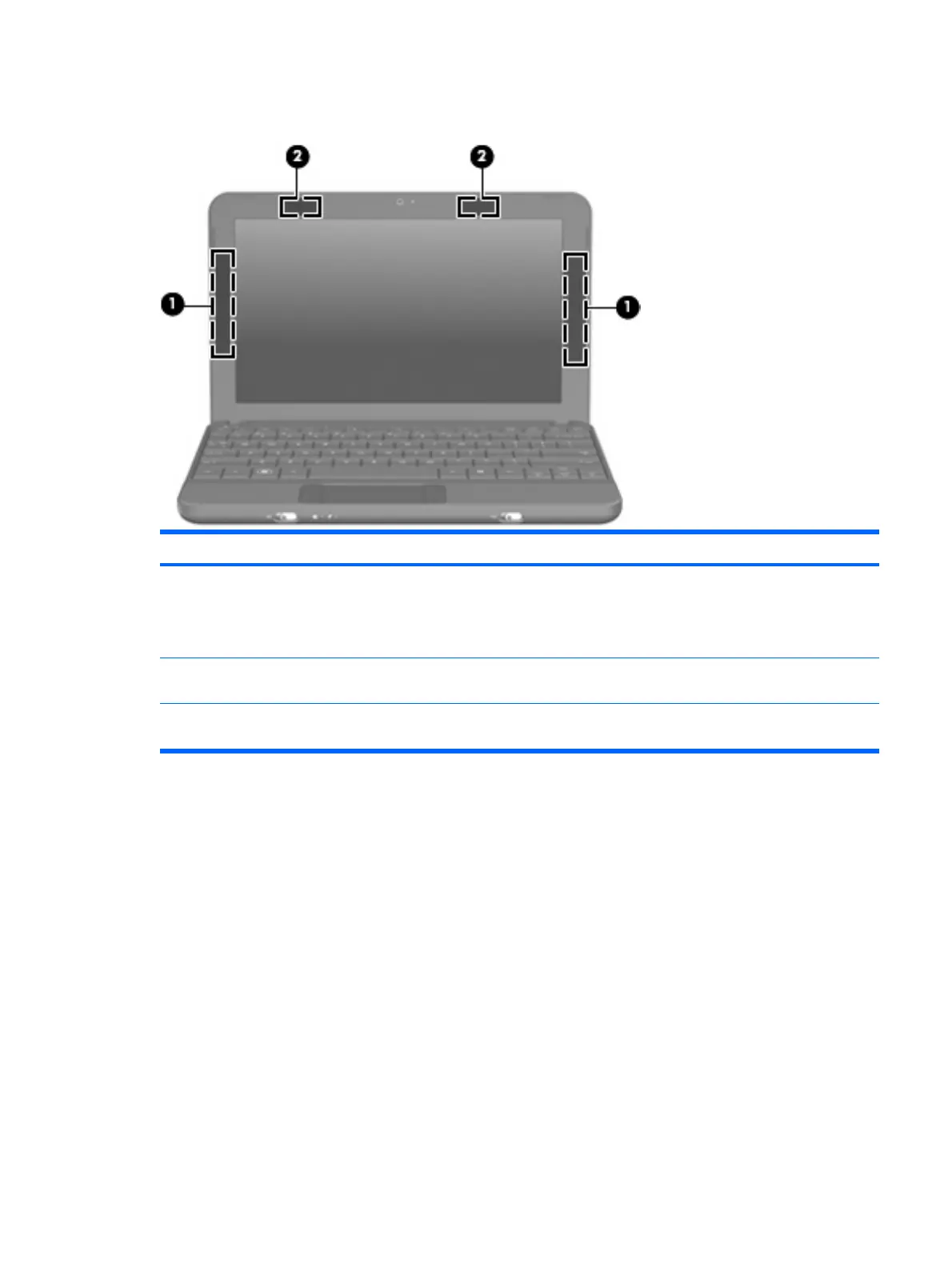 (2) WLAN antennas (2)* Send and receive wireless signals to communicate with wireless