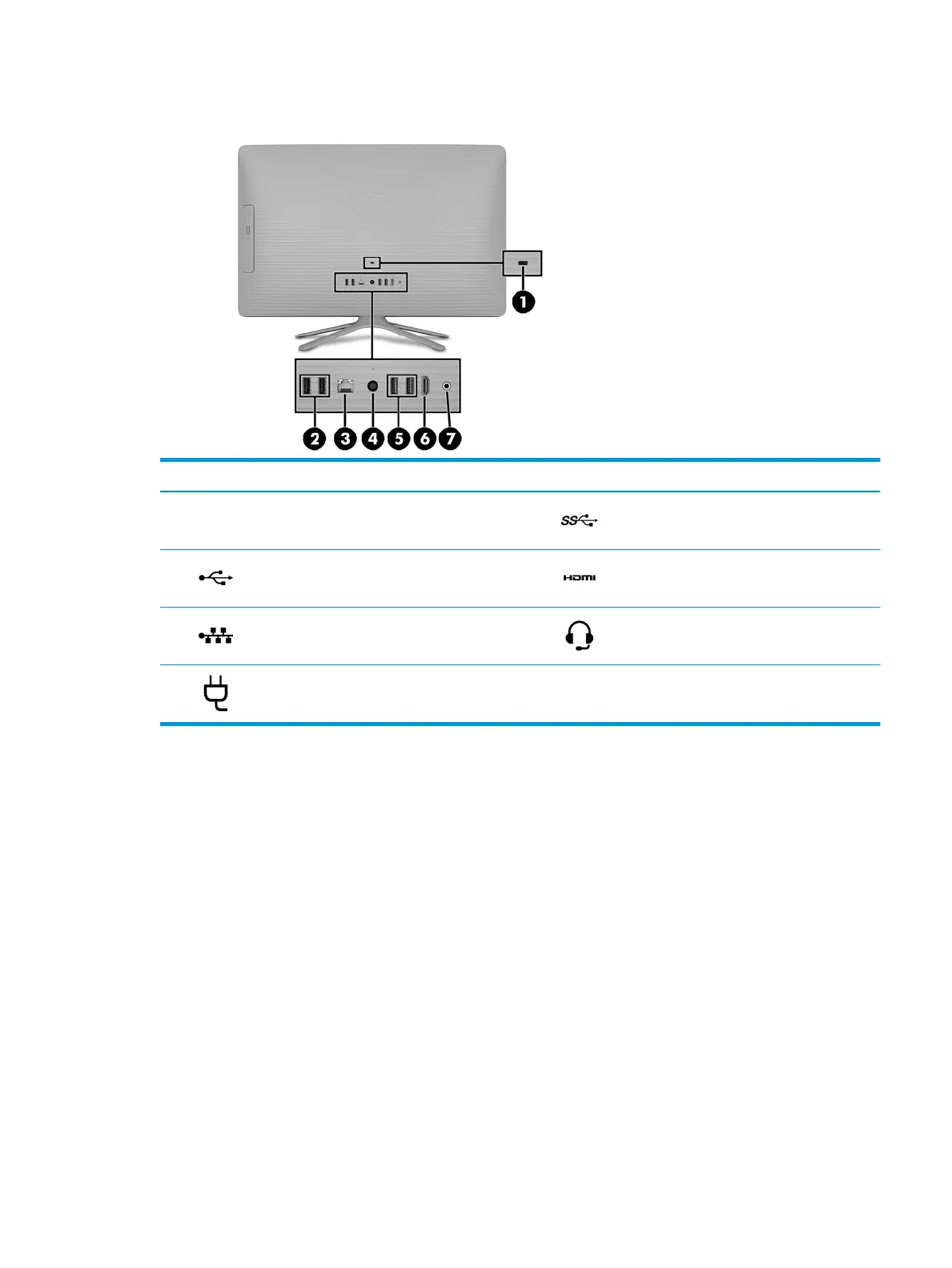 (1) Security lock slot (5) USB 3.0 ports (black)
