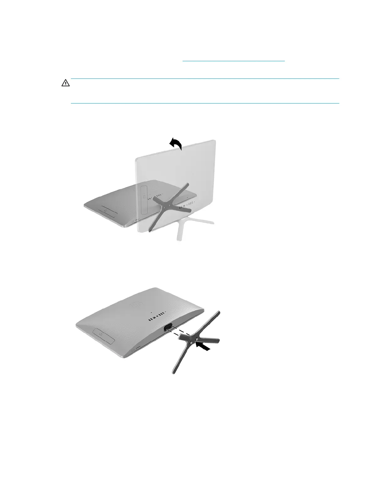 4. Loosen the two captive screws that secure the stand assembly to the computer, and then remove