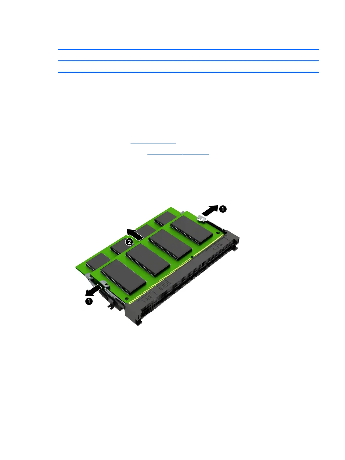 1. Spread the retaining tabs (1) on each side of the memory module slot to release the memory module.