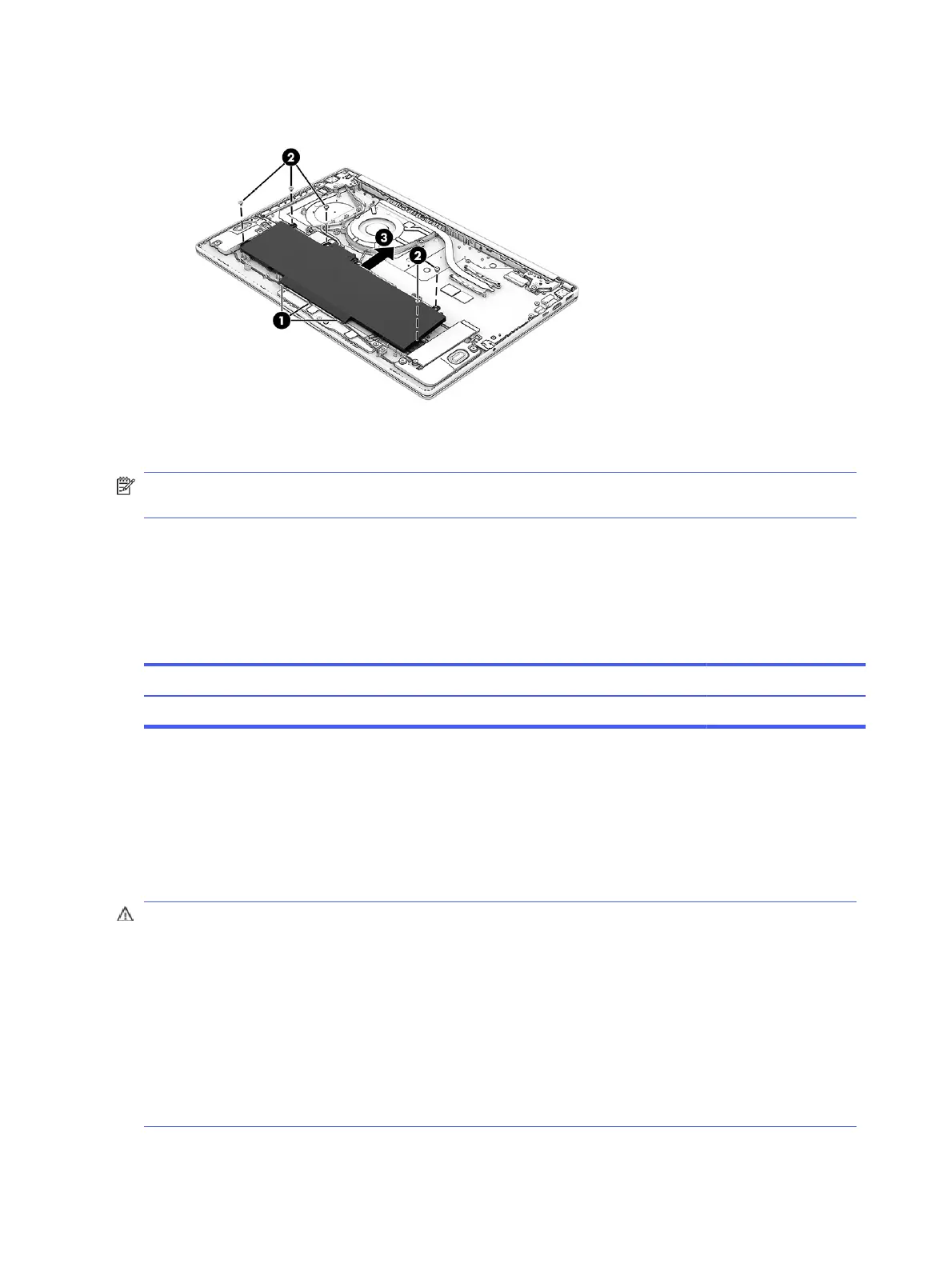 3. Lift the top of the battery up and then pull into the computer to remove it (3).
