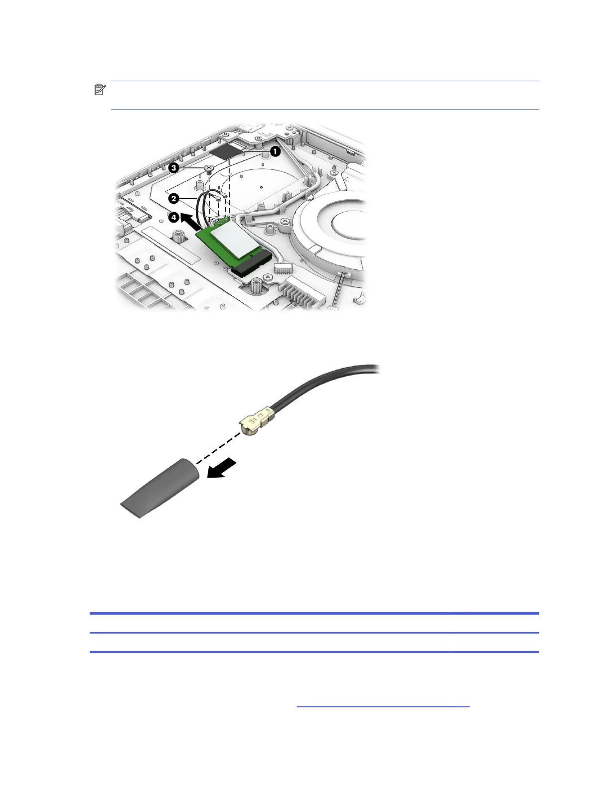 NOTE: The #1 white WLAN antenna cable connects to the WLAN module #1 Main terminal. The #2