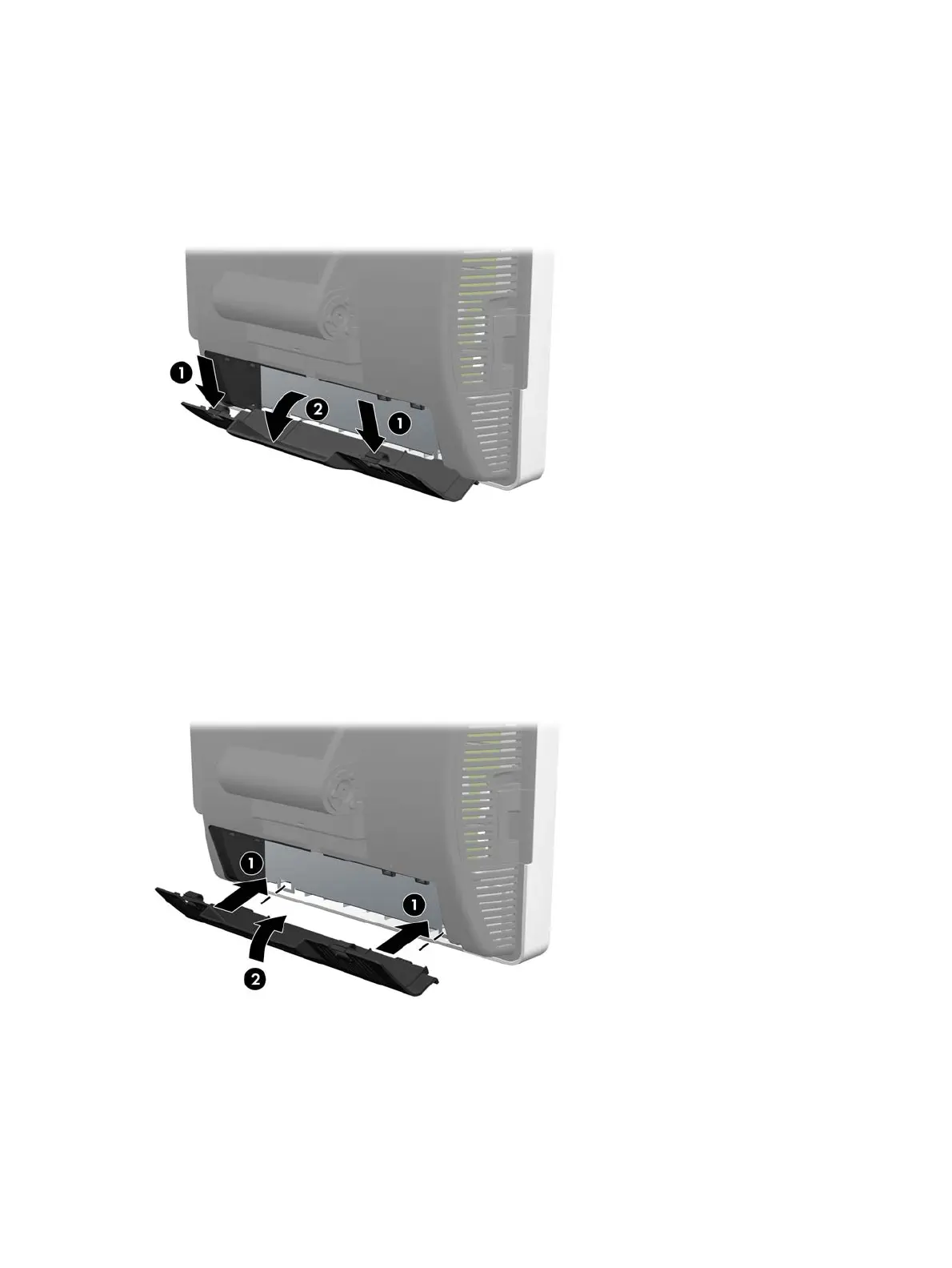 Afbeelding 2-2 Klepje over de I/O-connectoren op de onderkant terugplaatsen