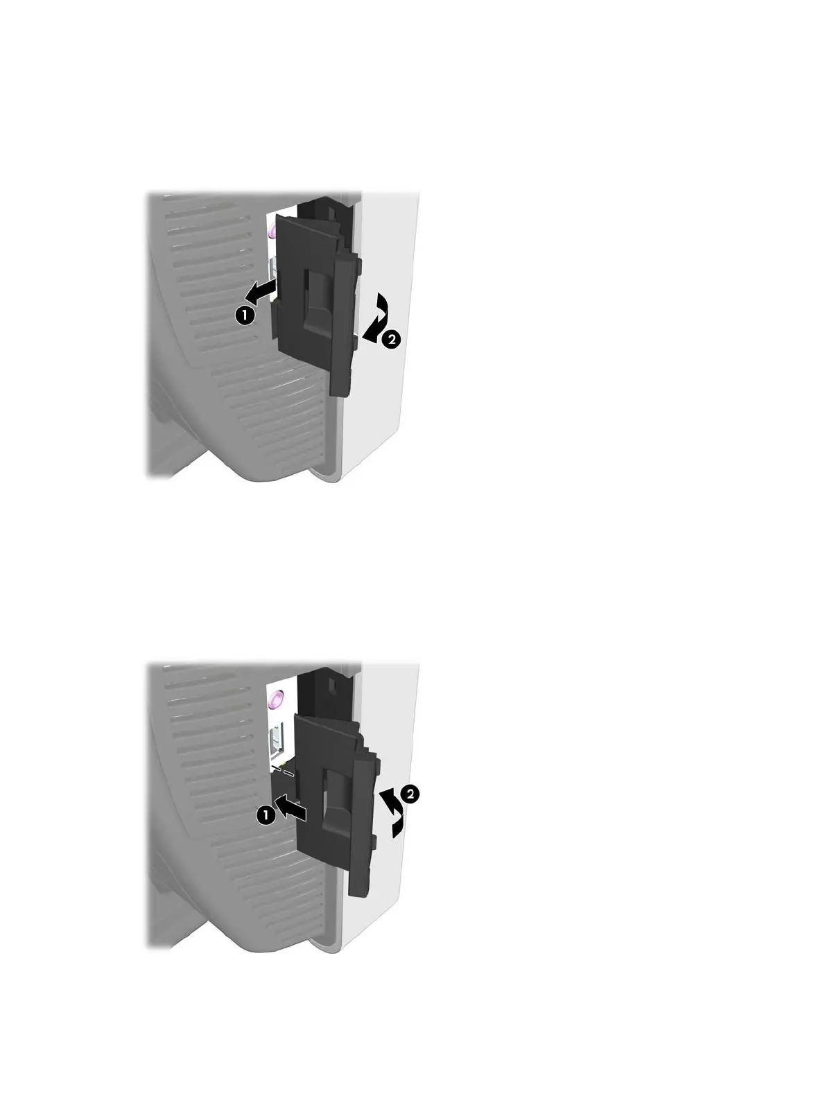Afbeelding 2-4 Klepje over de I/O-connectoren op de zijkant terugplaatsen