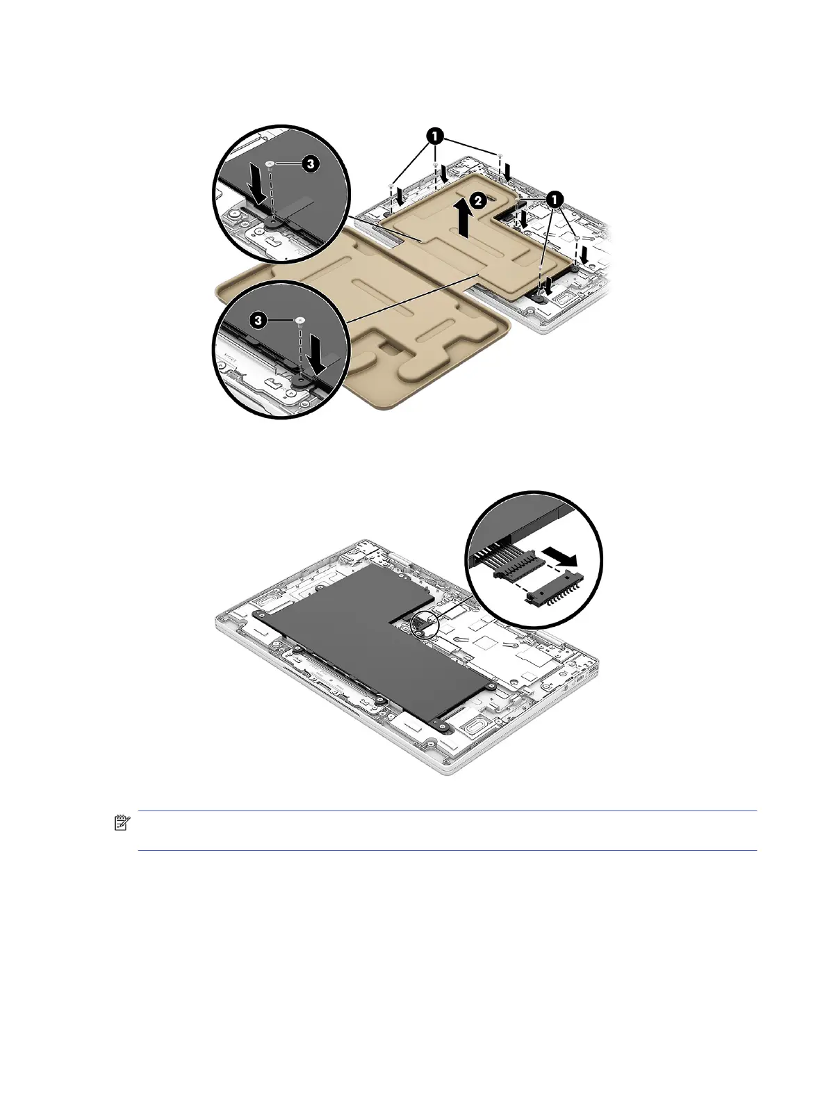 e. Install the two remaining Phillips screws (3) to secure the battery.