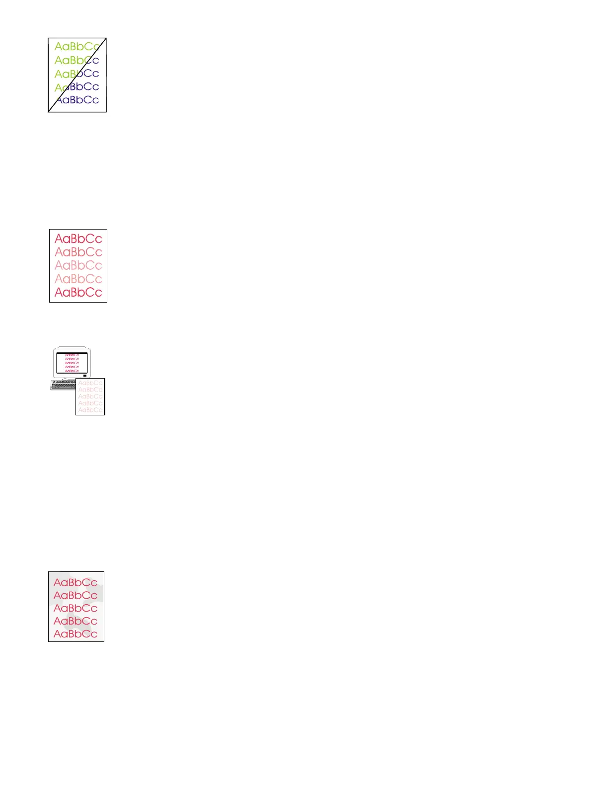 ● Extremely light colors or extremely dark colors on screen are not printing. Your program