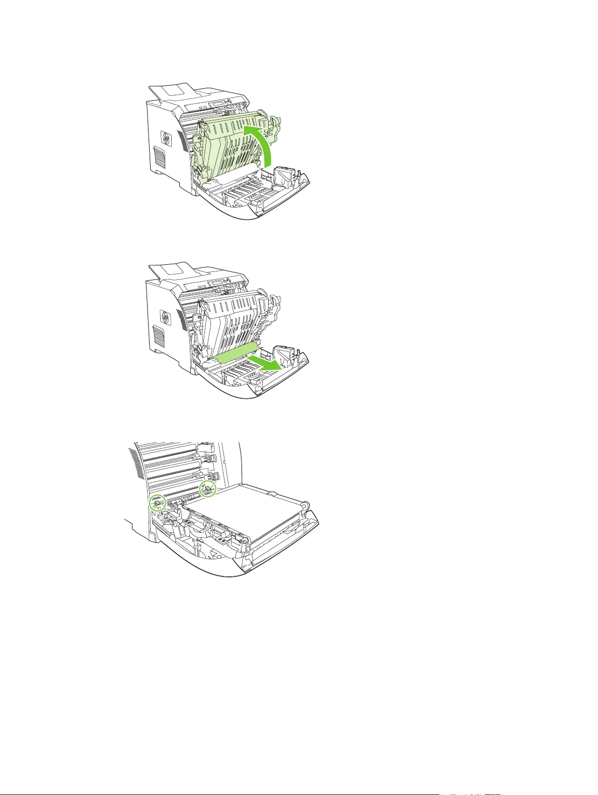 3. Draai de transfereenheid omhoog en van de voorklep af.