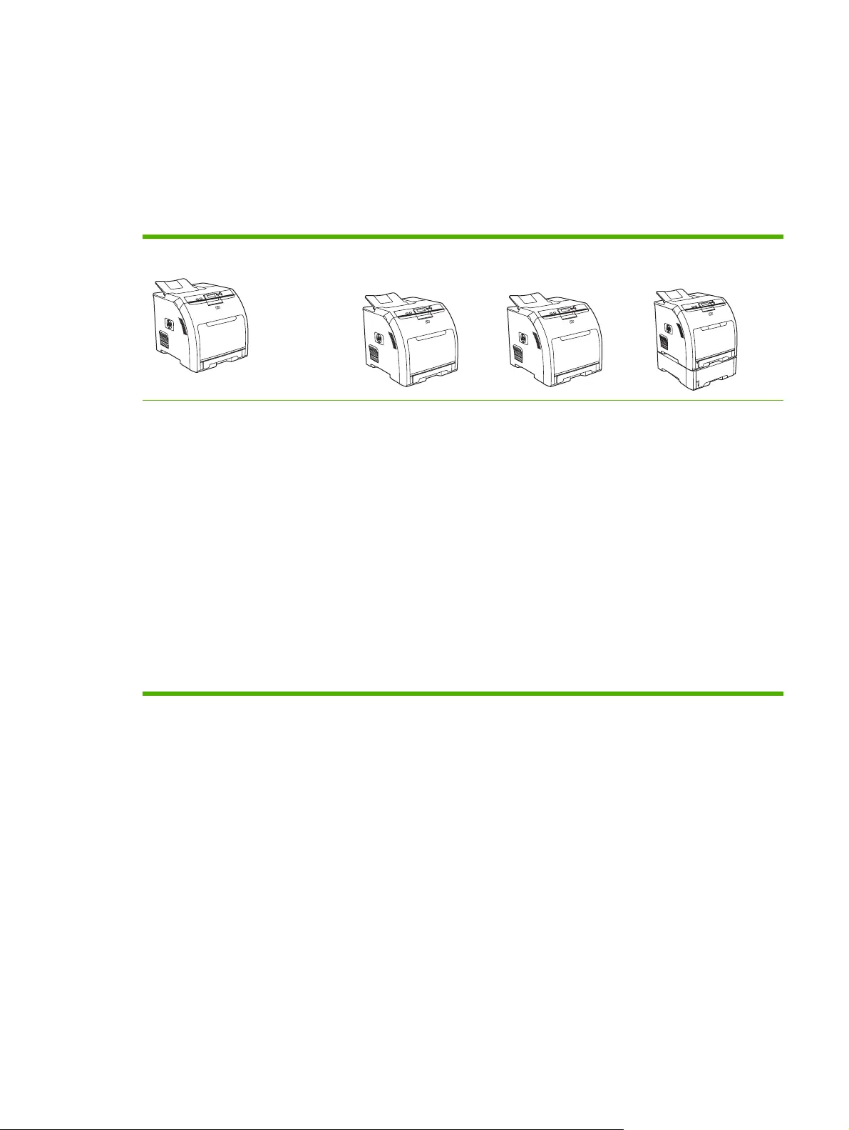 De HP Color LaserJet 3000, 3600 en 3800-serie printers zijn verkrijgbaar in de hieronder beschreven