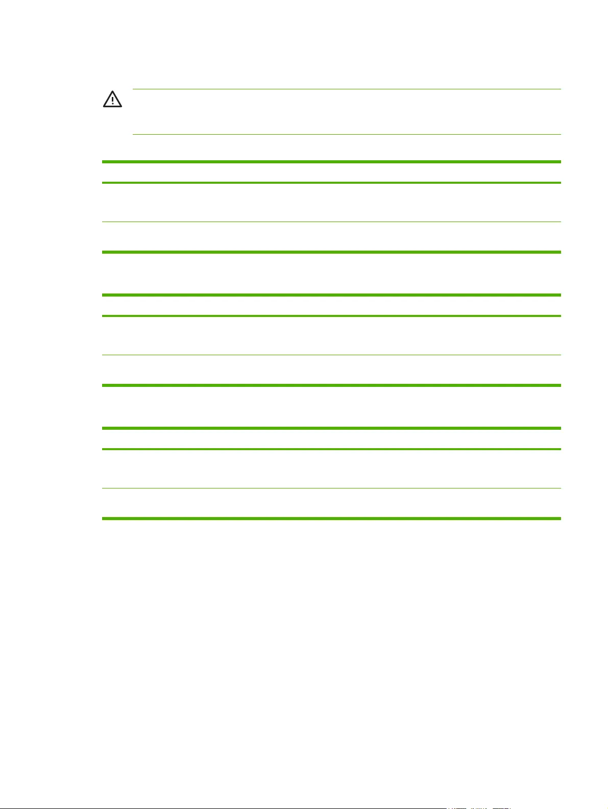 Tabel C-2 Voedingsspecificaties voor de HP Color LaserJet 3000-serie printers