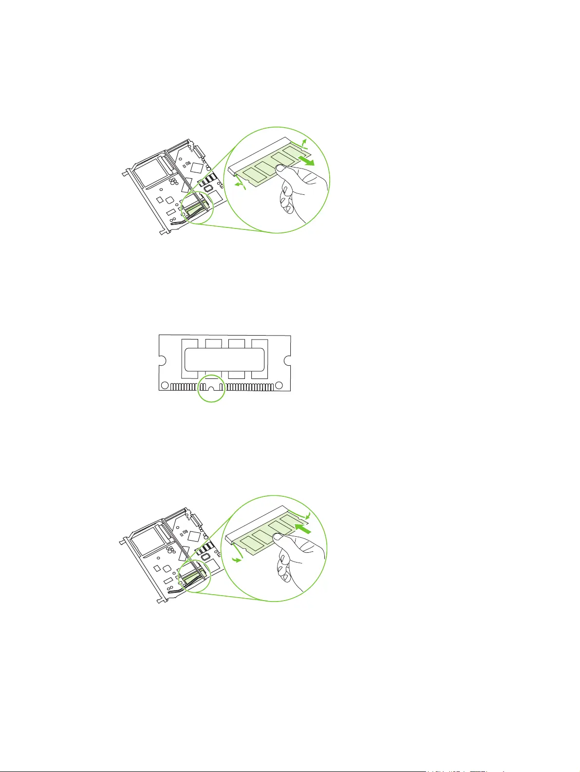 5. Houd de DIMM bij de randen vast en breng vervolgens de inkeping in de DIMM onder een hoek