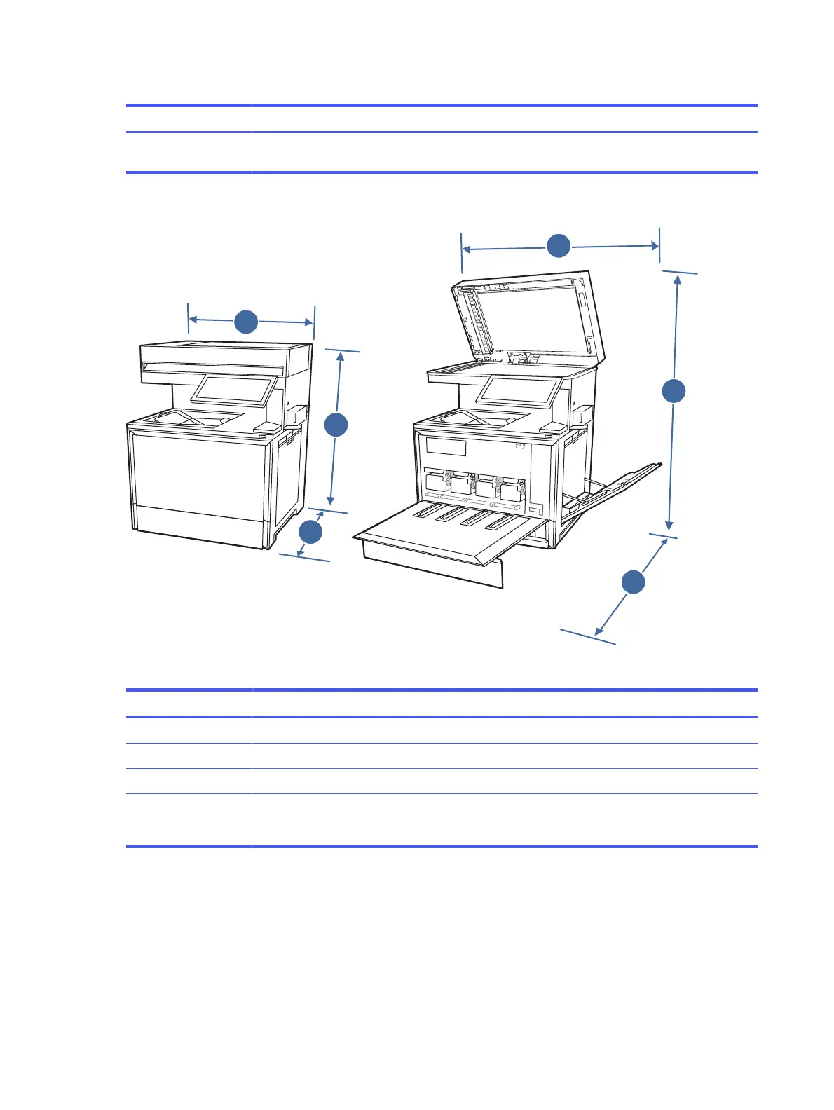 Table 1-10 Dimensions for the printer (f and zf models)