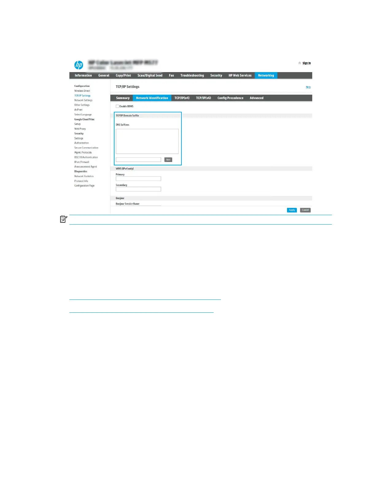4. If DNS is required on the network, in the TCP/IP Domain Sux area, verify that the DNS sux for the email