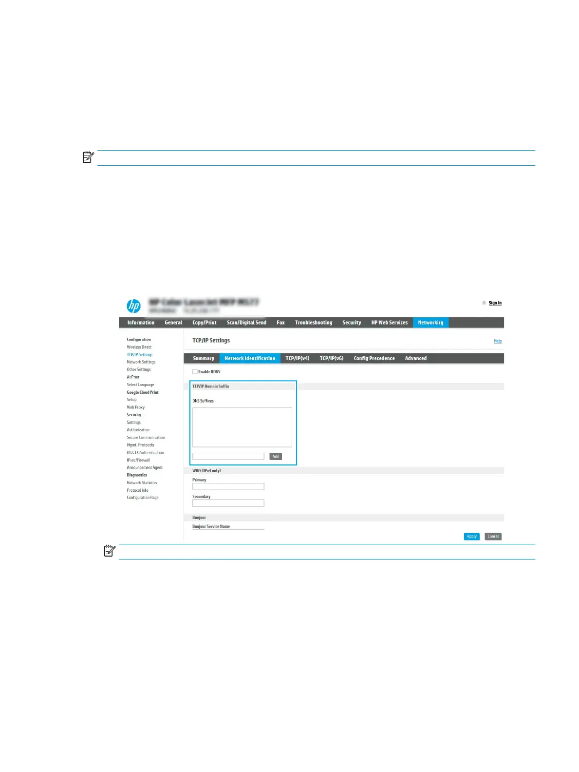 4. If DNS is required on the network, in the TCP/IP Domain Sux area, verify that the DNS sux for the email