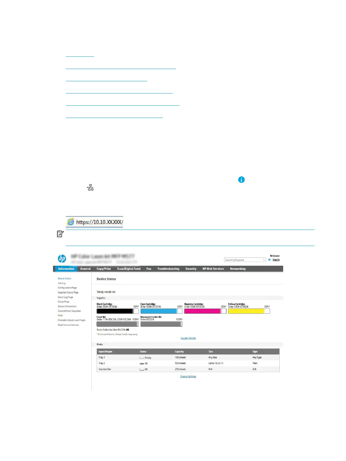 printer control panel. Press the Enter key on the computer keyboard. The EWS opens.
