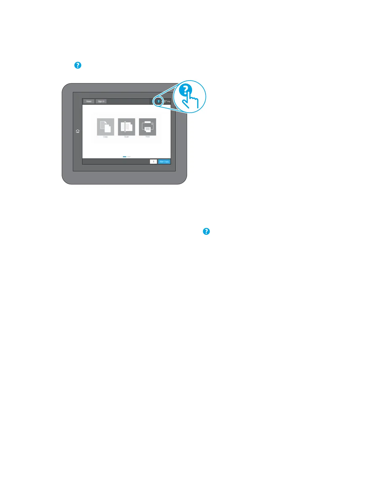 The printer has a built-in Help system that explains how to use each screen. To open the Help system, touch the