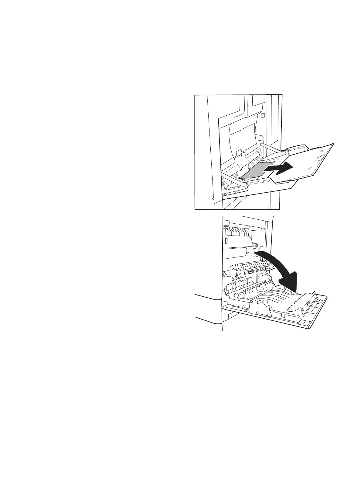 Use the following procedure to check for paper in all possible jam locations related to Tray 1. When a jam occurs,