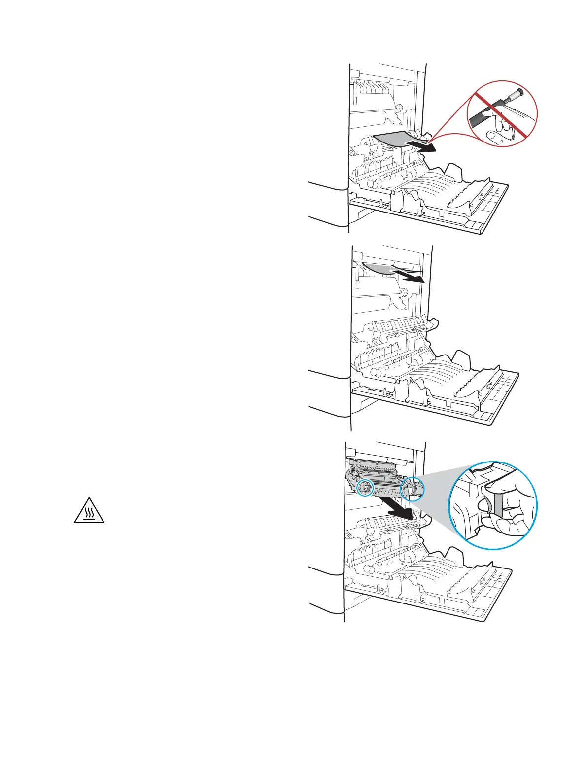would not be visible. Grasp the fuser handles, lift