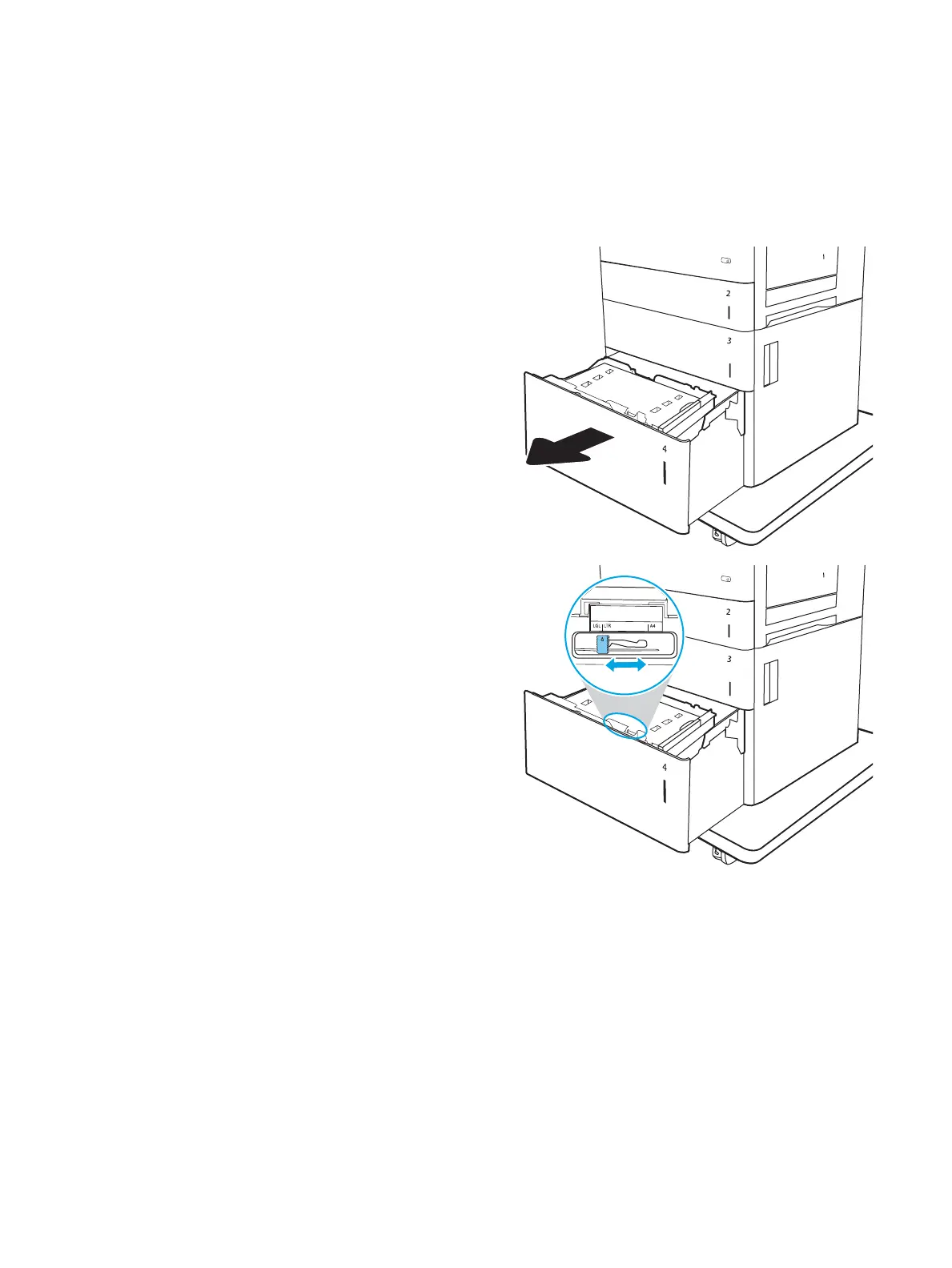The following information describes how to load paper into High-capacity input tray. This tray holds up to 2,000