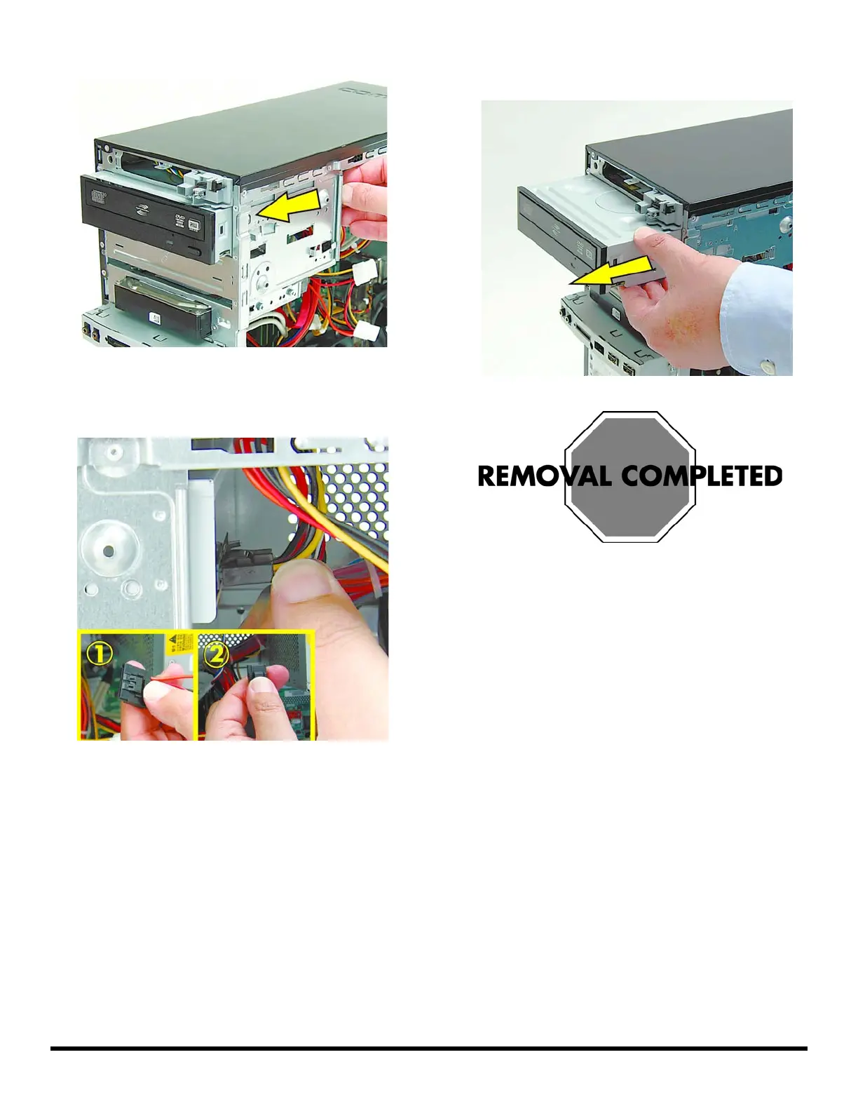 12 Disconnect the power (1) and data (2) cables by