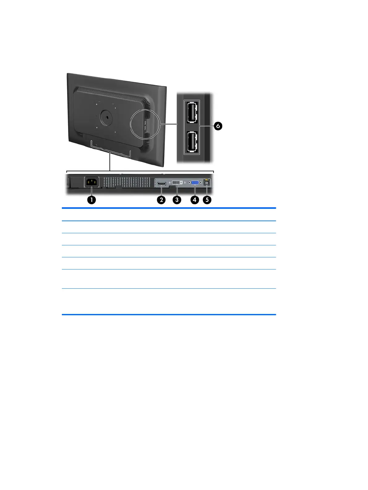 1 Netvoedingsconnector Voor aansluiting van het netsnoer op de monitor.