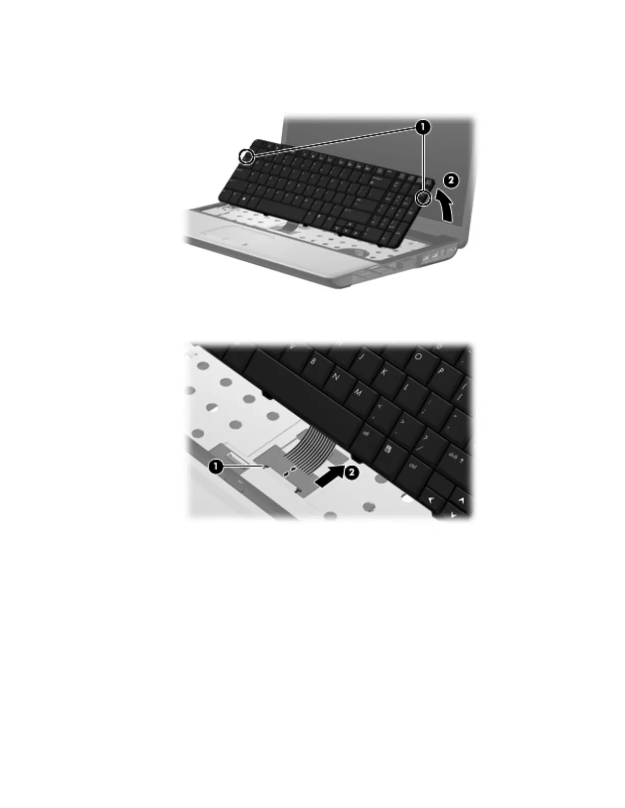 6. Lift the rear edge of the keyboard 2, and then slide it back until it rests on the display.