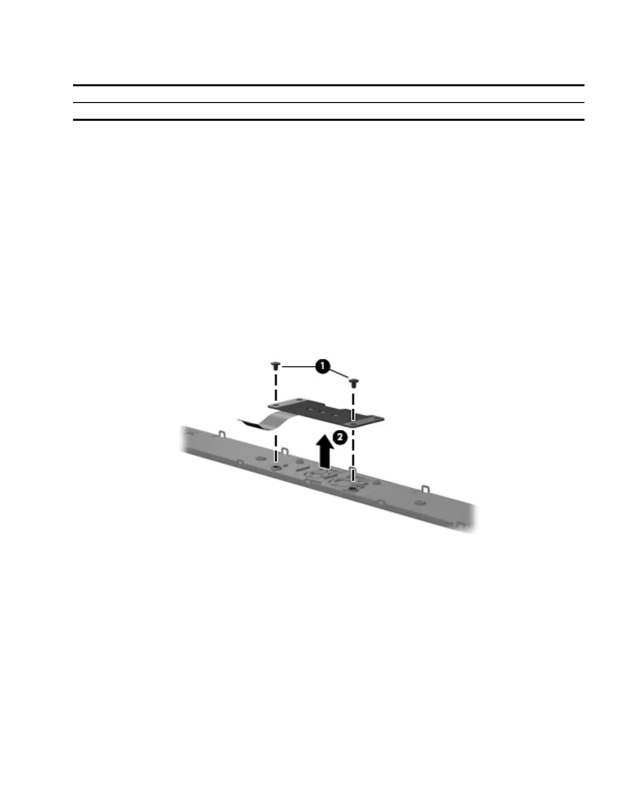 1. Remove the two Phillips PM2.0x4.0 screws 1 that secure the power button board to the keyboard cover.