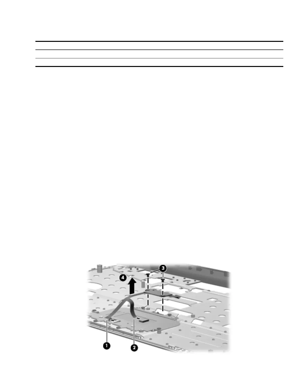 3. Release the ZIF connector on the TouchPad button board to which the TouchPad on/off board cable is attached,