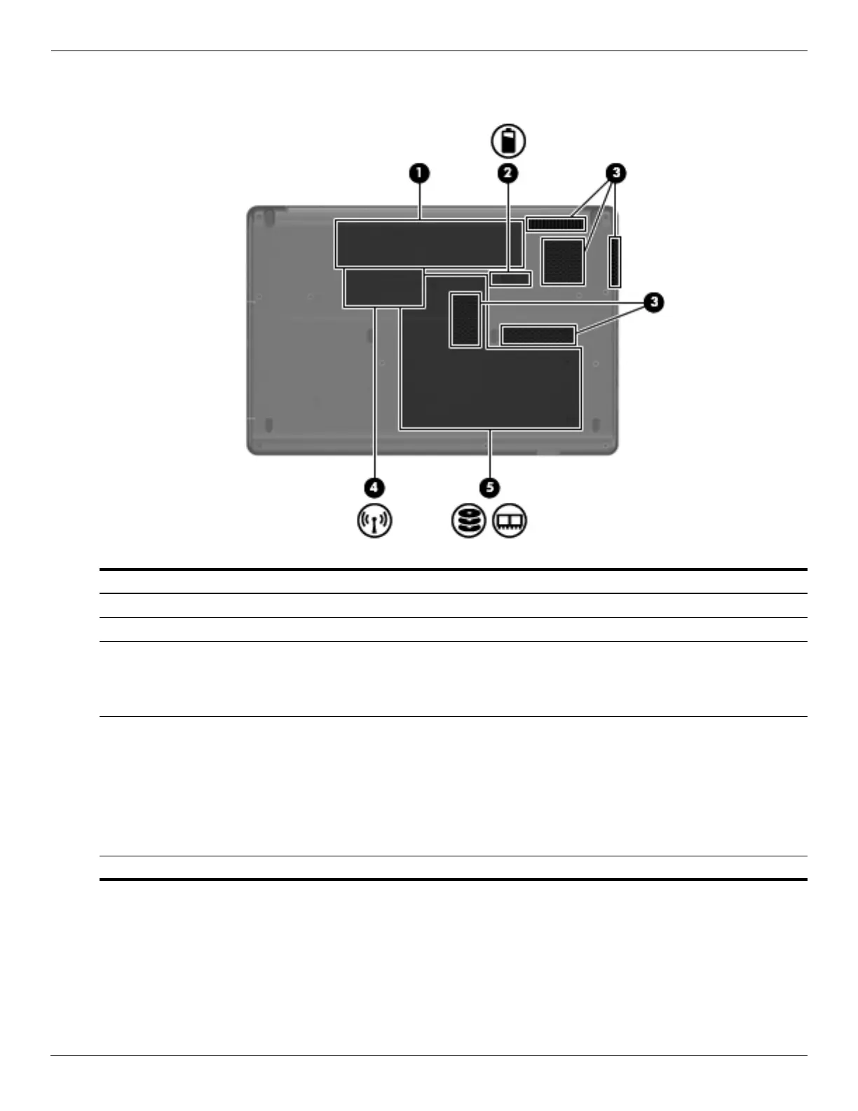 5 Hard drive bay Holds the hard drive and contains the memory module slots.
