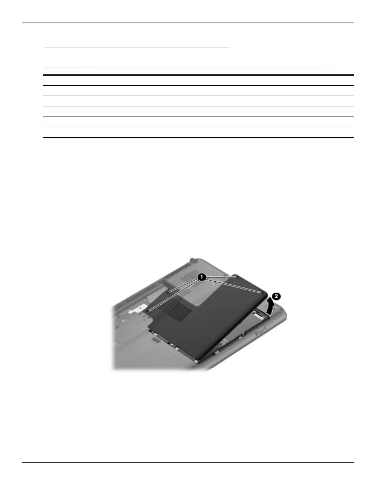 1. Loosen the 4 Phillips PM2.5×6.0 captive screws 1 that secure the hard drive cover to the computer.