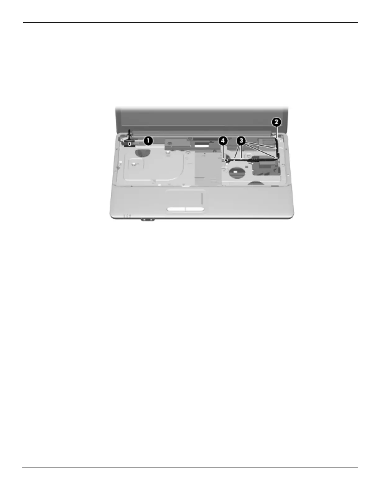 1. Pull the antenna cables through the opening in the top cover 1 and disengage the cables from the clip in the