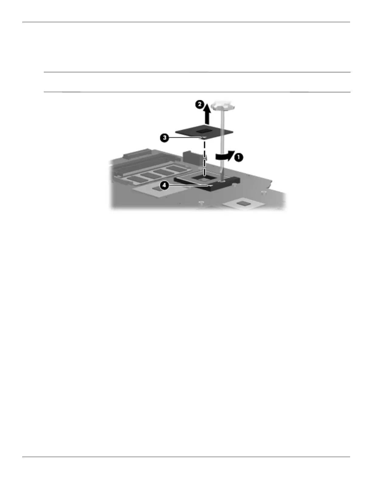 1. Use a flat-bladed screwdriver to turn the processor locking screw 1 one-half turn counterclockwise until you