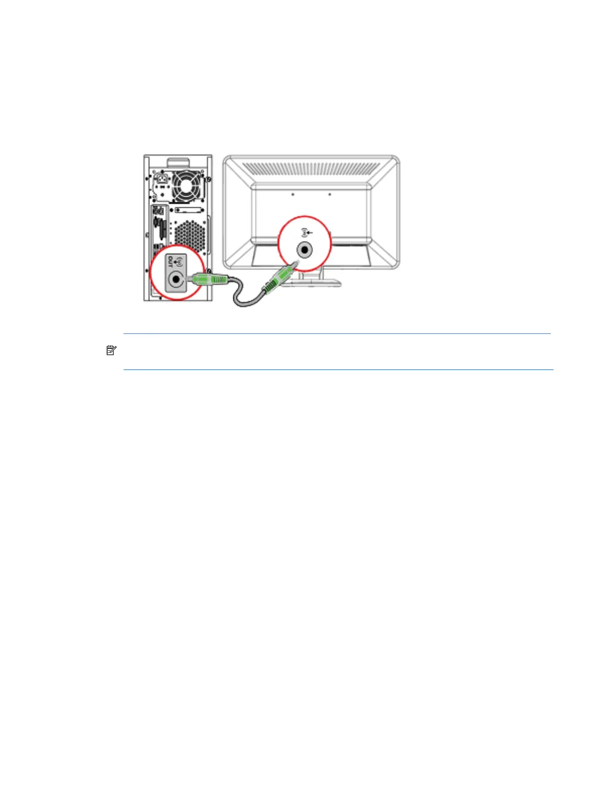 Connect the built-in monitor speakers to the computer by using the audio cable, as the
