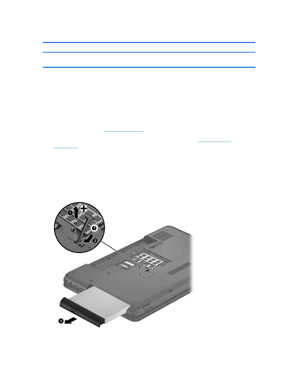 Use a flat-blade screw driver or similar tool to press on the optical drive bracket tab (2) to release