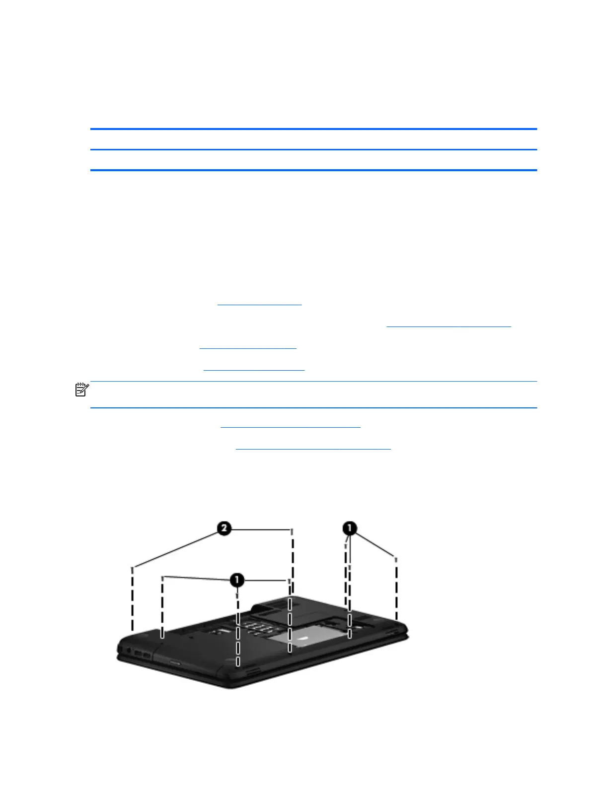 1. Remove the six Phillips PM2.5×6.5 screws (1) and the two Phillips PM2.5×10.0 screws (2) that