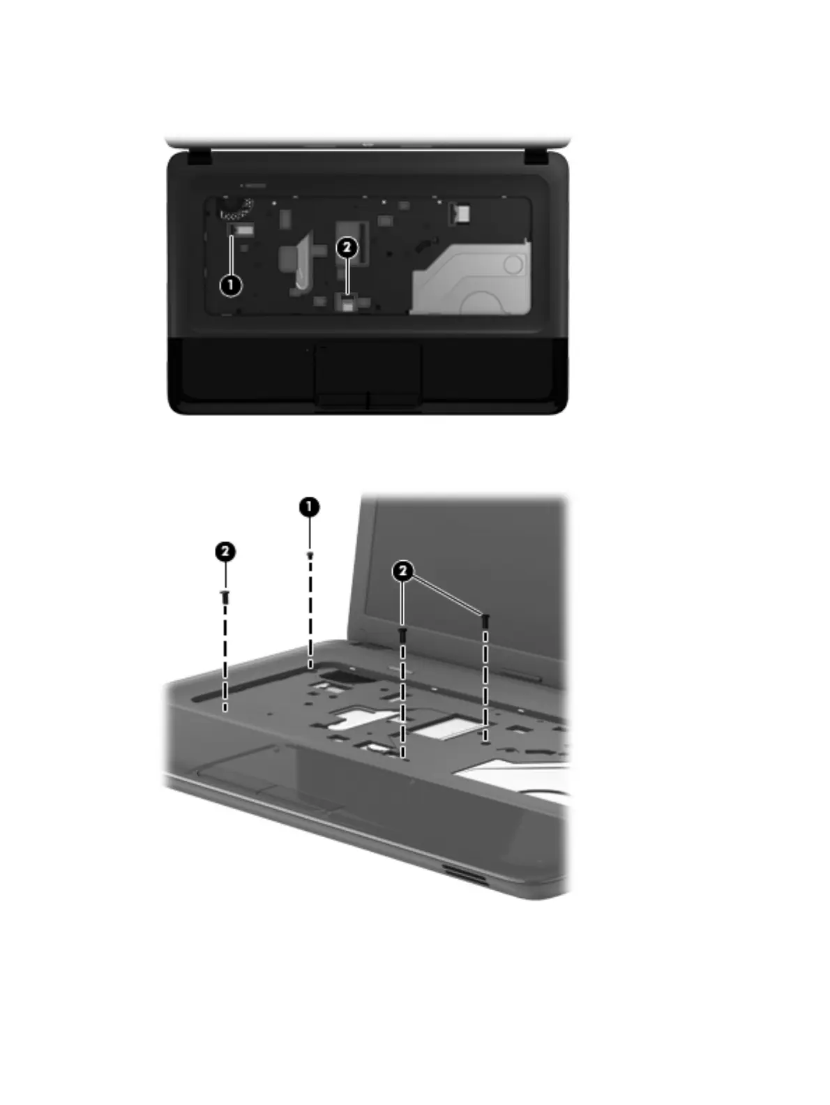 8. Remove the Phillips PM2.0×2.5 screw (1) and the three Phillips PM2.5×6.5 screws (2) that secure