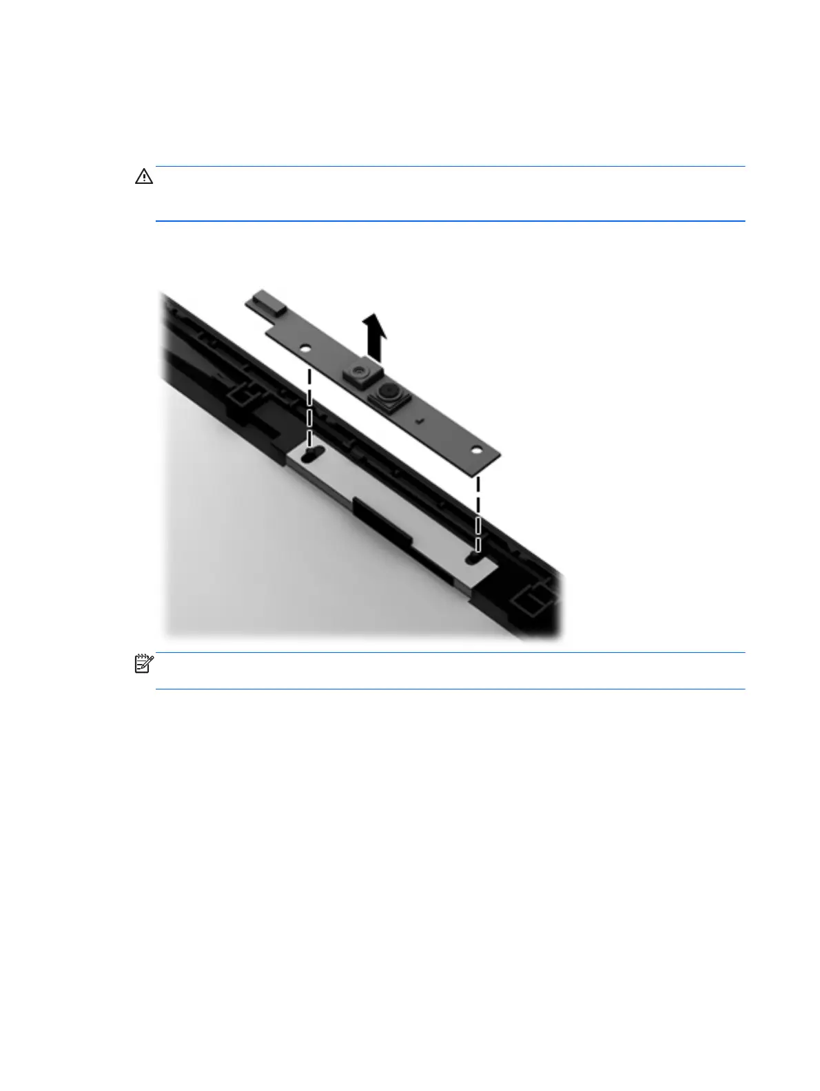 CAUTION: Due to the thin profile of the webcam/microphone module, it is easily damaged.