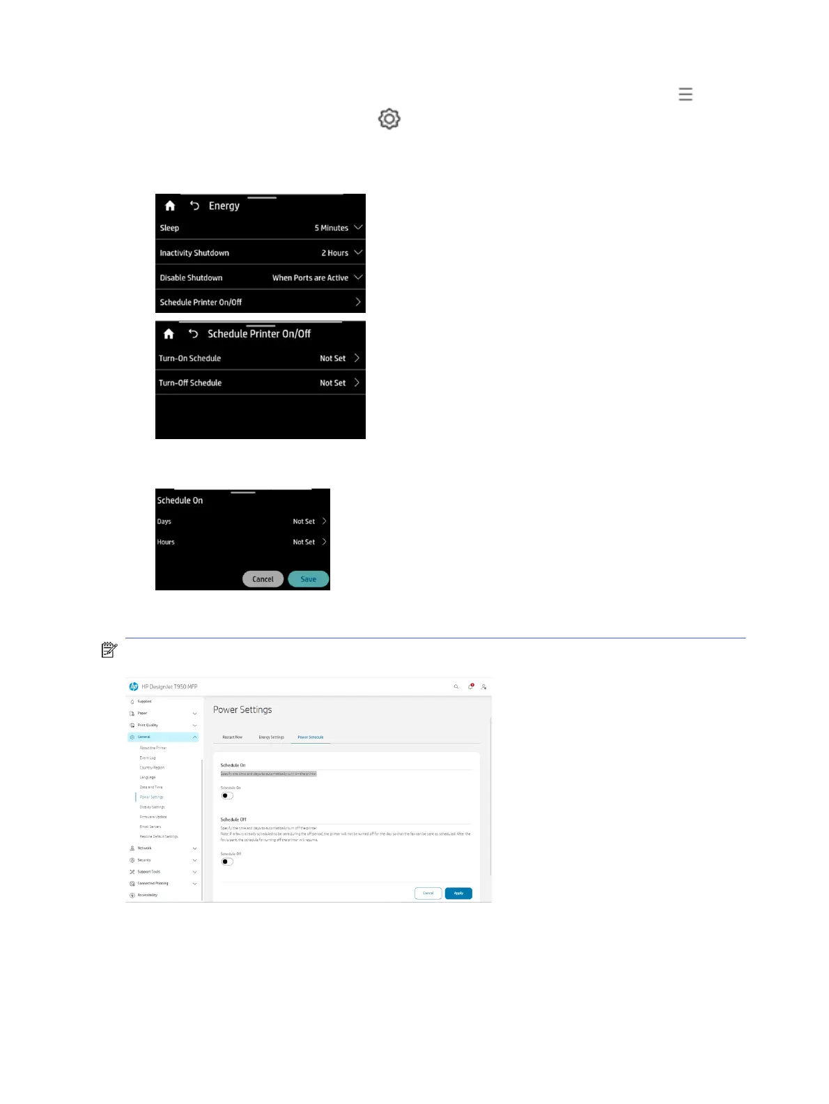 3. Tik op een optie om de geplande aan- of uit-tijd in te stellen (zoals weergegeven).