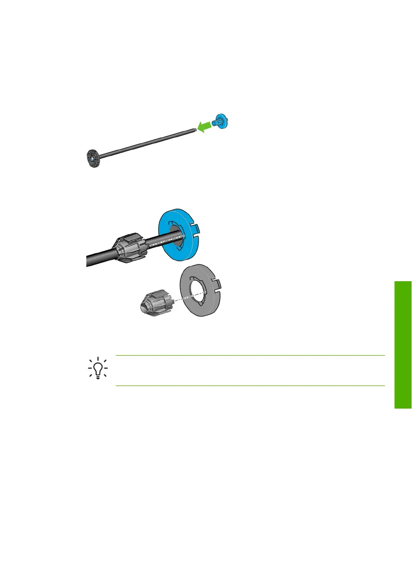 ます。 スピンドルの端から青い用紙ストッパを取り外します。