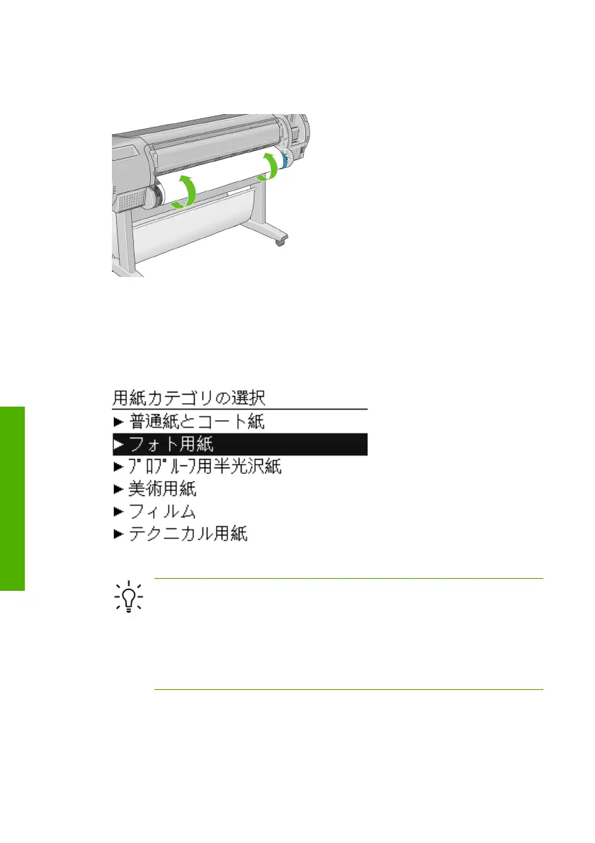 用紙がプリンタに給紙されると、ロール紙またはカット紙のどちら