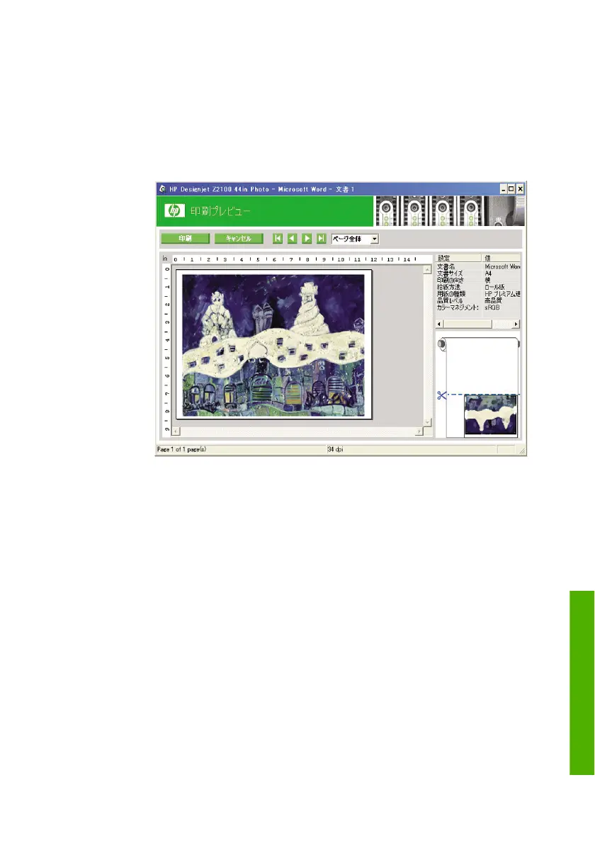 レビューが表示されます。印刷設定およびイメージのレイアウ