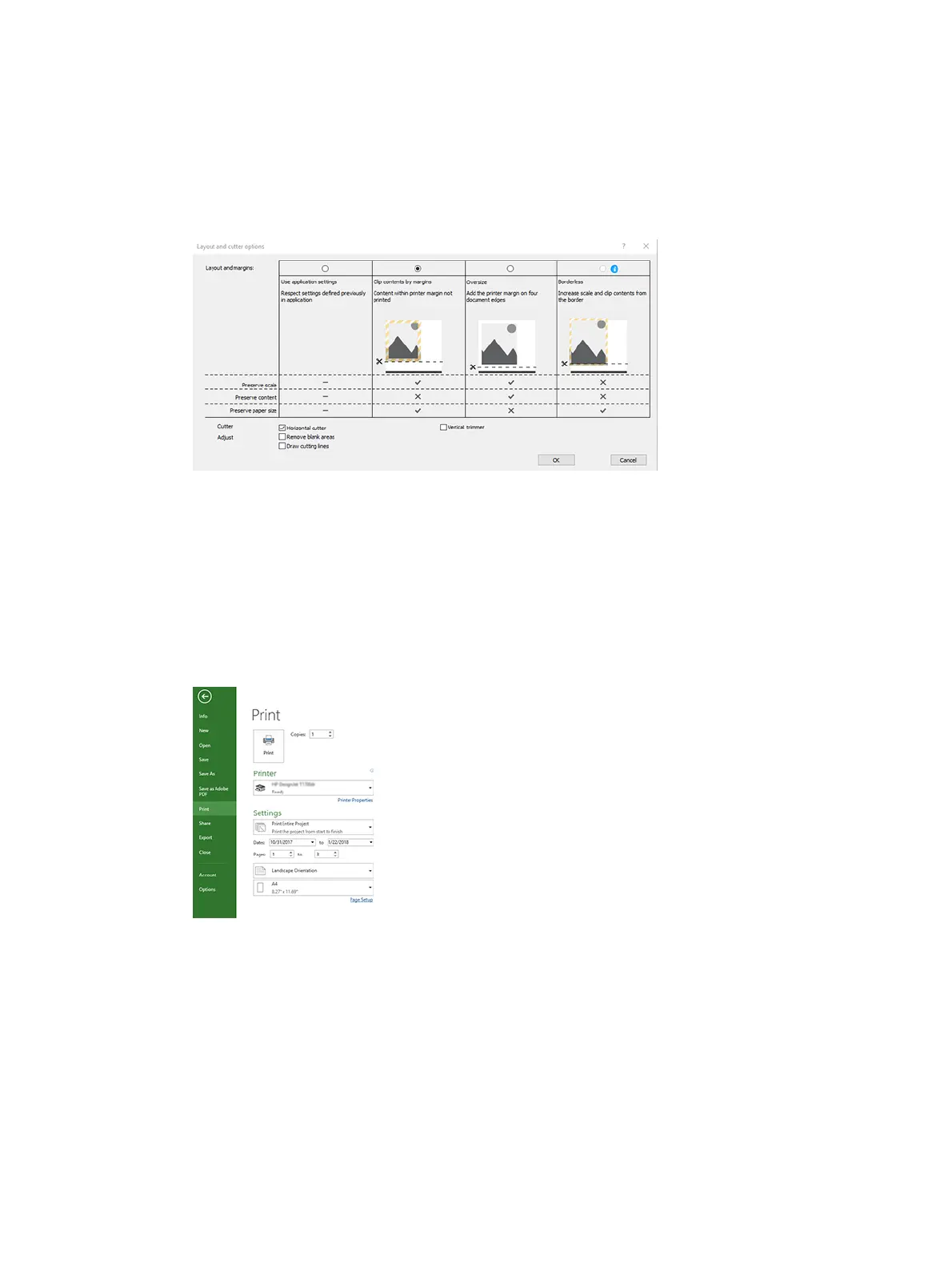 Instellingen van de optie Marges/snijmachine en vervolgens op Inhoud afsnijden op marges.
