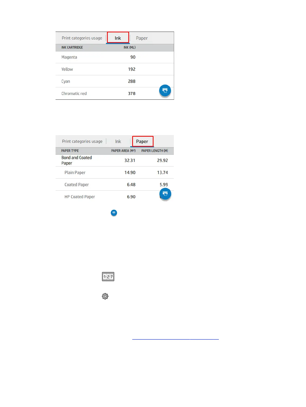 Er zijn twee verschillende manieren om de verbruiksinformatie af te drukken vanuit het Home-scherm